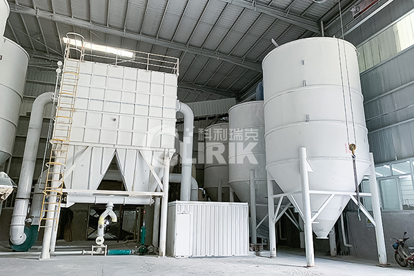 3. 重晶石块颗粒在磨粉机中进行研磨,分级,合格粉子通过分级机后被收集,不合格粉子进行再研磨